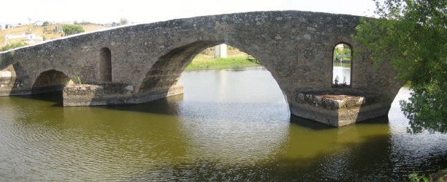 Diese siebenbogige römische Granitbrücke überspannt den Fluss Ribeira Grande. Den Pfeilern sind vier Strombrecher vorgelagert. Sie war Bestandteil zweier römischer Staatstraßen, der 325 Km langen via publicae von Olisipo (Lissabon) über Aritium Vetus (Alvega) nach Emerita (Spanien, Mérida) sowie der nur 230 Km langen via publicae ebenfalls von Olisipo (Lissabon) alternativ über Abelterio (Alter do Chão) nach Emerita (Spanien, Mérida).